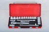 CONTENTS: 18PCS-1/2"Dr socket set:10 11 12 13 14 15 16 17 18 19 20 21 22 23 24 27 30 32MM 1pcs:1/2Dr Spark plug sockets:21mm 2pcs:-1/2Dr externsion bar:5"&10" 1/2"Dr sliding Tbar:12" 1pcs-1/2"Dr universal joint 1pc-1/2"Dr quick ratchet handle 1pc-metal case packing in carton